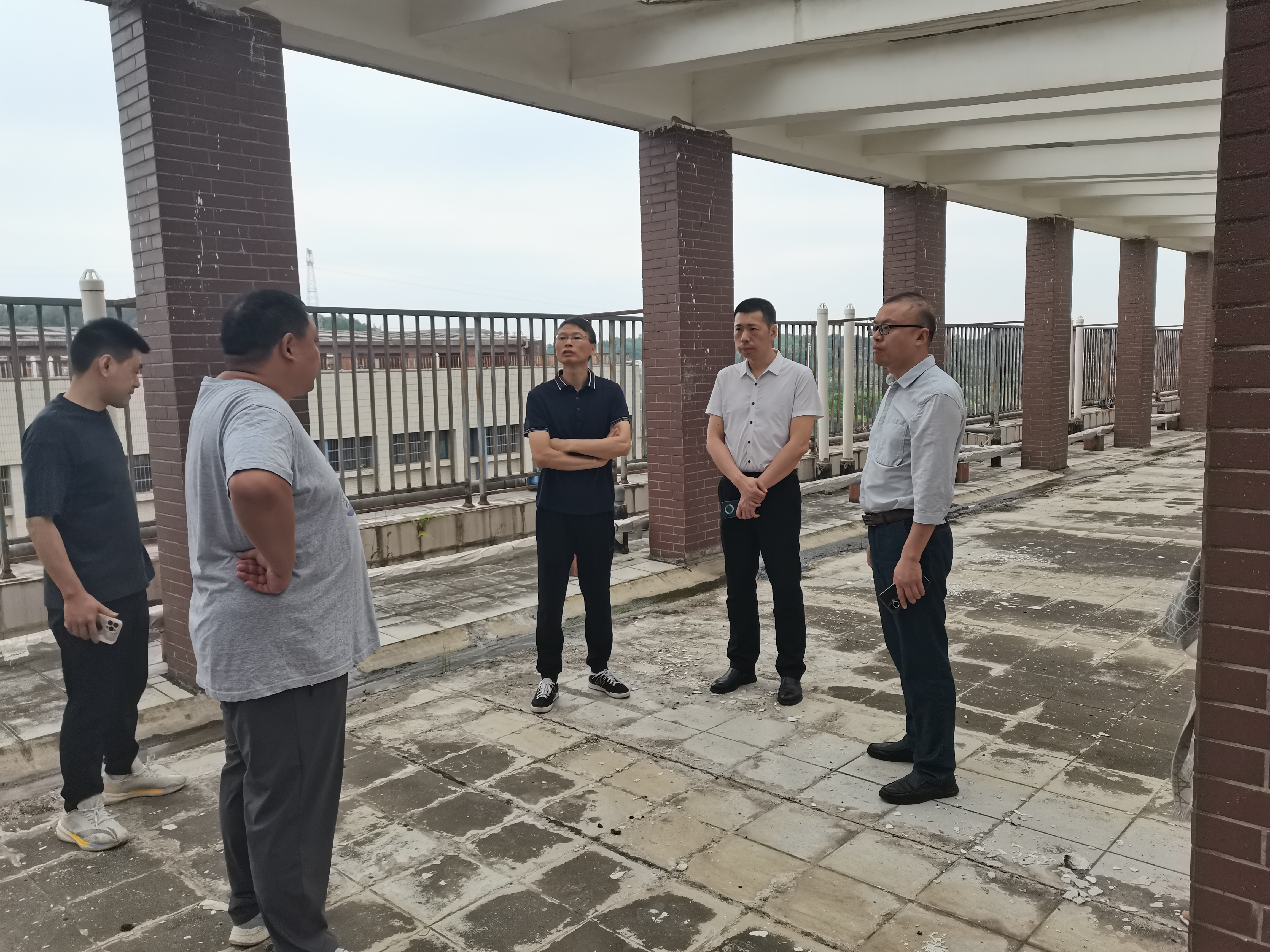 2024年6月5日上午,基建处彭浩处长会同校后勤服务管理中心处长张振华,带领基建处2名同志及施工单位代表检查了南区9栋宿舍楼顶消防水箱情况。主要查看了水箱是否有破损、变形或渗漏,进水管道是否有渗漏,溢流阀是否正常工作,出水管道是否存在渗漏、阻塞,水泵电源线是否有松动或磨损,水泵是否有异响,是否存在杂质或异味,排放管道是否畅通,是否存在堵塞等情况。