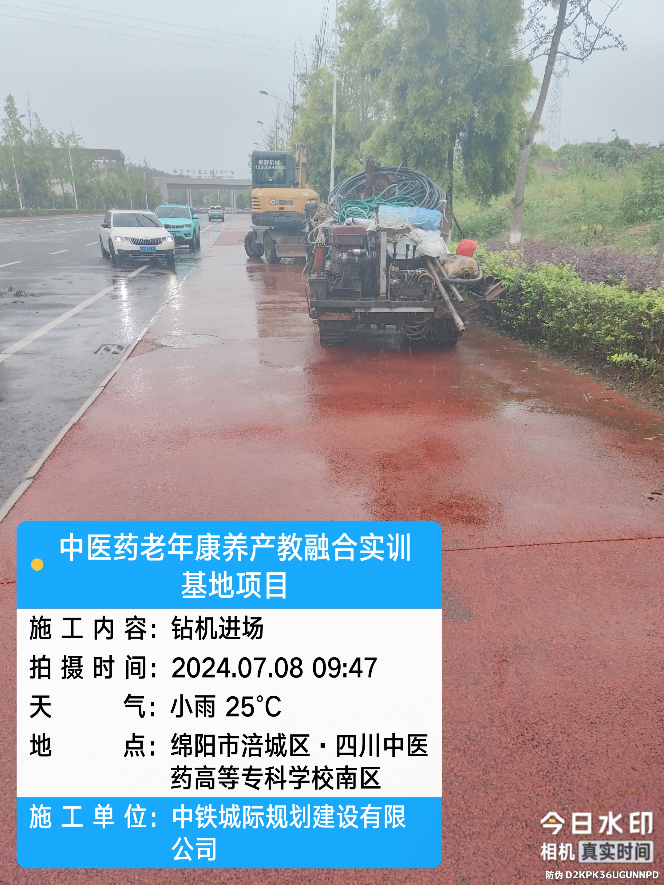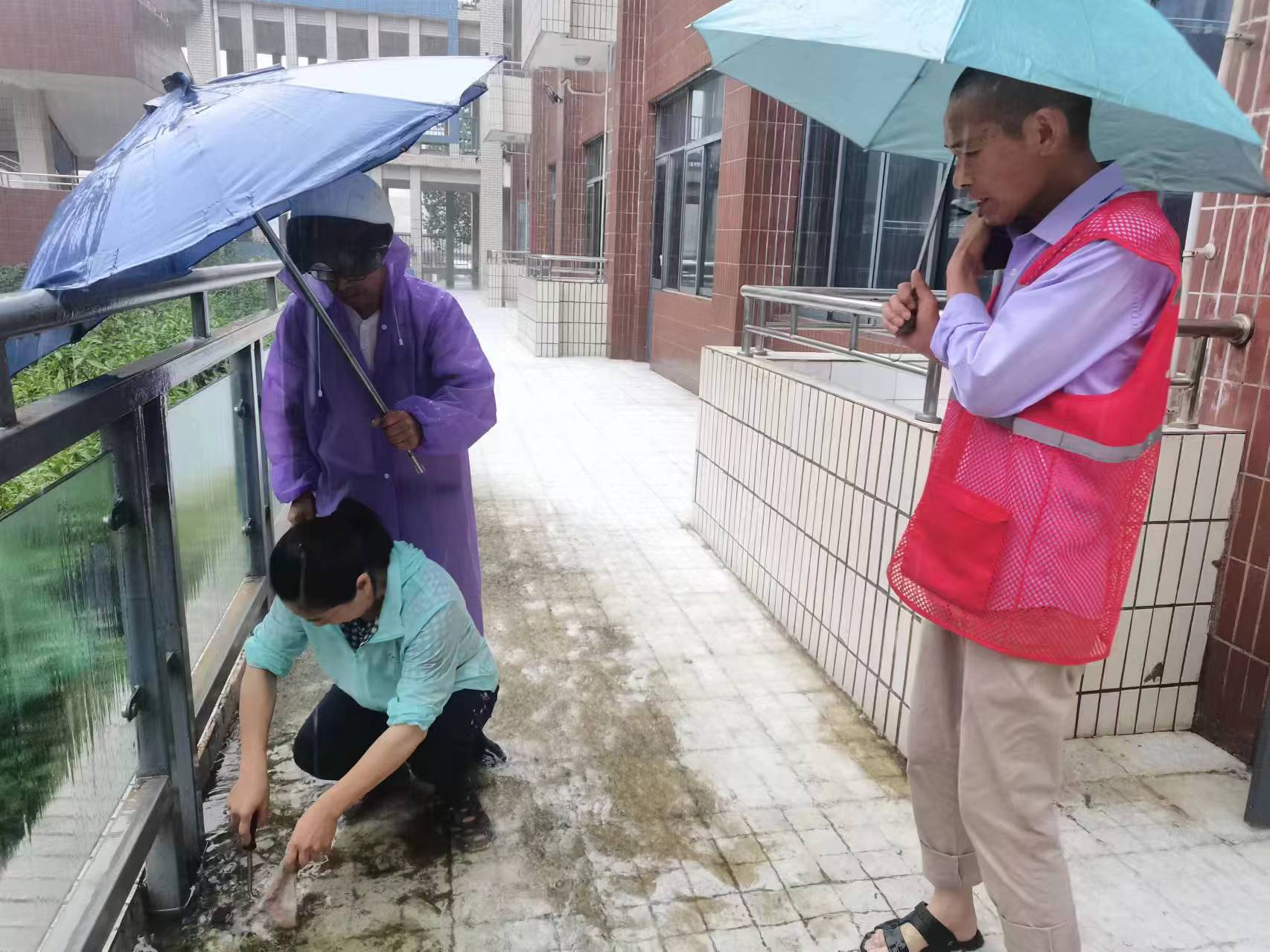 基建处工作人员冒雨巡查校区安全