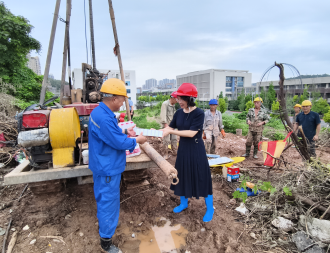 2024年7月16日,肖玲副校长带领着基建处的同志们前往工地现场慰问工人,为户外工人们送上防暑物资和预防中暑药物。肖玲副校长对辛勤劳作的工人们表示感谢,她强调:地质勘察是工程建设的基础,其关键作用在于为工程设计提供准确、可靠的地质数据,以确保工程的安全性、经济性和可行性,希望工人们能保质保量高效地完成地勘任务,为康养项目的建设奠定夯实的基础。