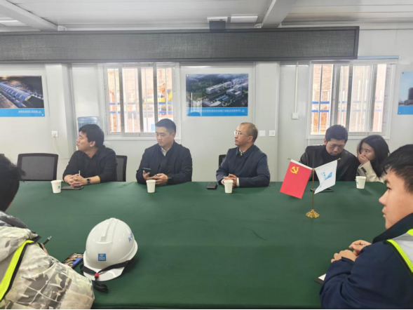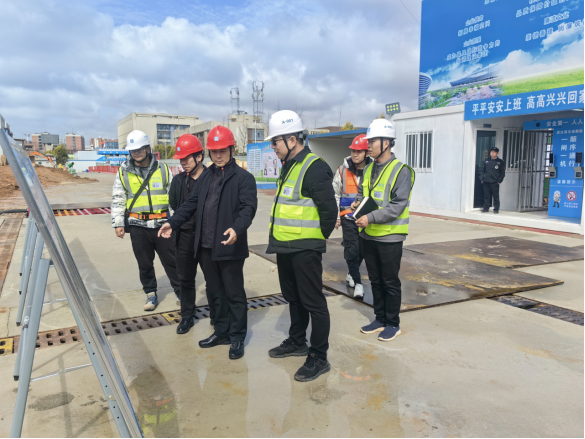 李鹏副总经理一行首先听取了项目经理李徐鹏关于项目概况、施工进展、进度计划及质量安全等方面的汇报。随后,李鹏副总经理深入施工现场,详细了解了项目现阶段重点工作及施工部署情况,并对项目提出了具体要求:一是要快速推进各项施工工作,确保项目按节点顺利竣工;二是要合理优化施工部署,确保各专业快速穿插;三是要坚决落实“三个一”管理模式;四是要高度重视项目建设对我校“专升本”及后续市场拓展的重要性,确保项目高标准、严要求完成,提升业主满意度。他强调,深入了解学校历史及项目背景对于项目成功推进至关重要,只有清晰把握项目建设的来龙去脉,才能更好地理解业主需求,确保项目高质量完成。