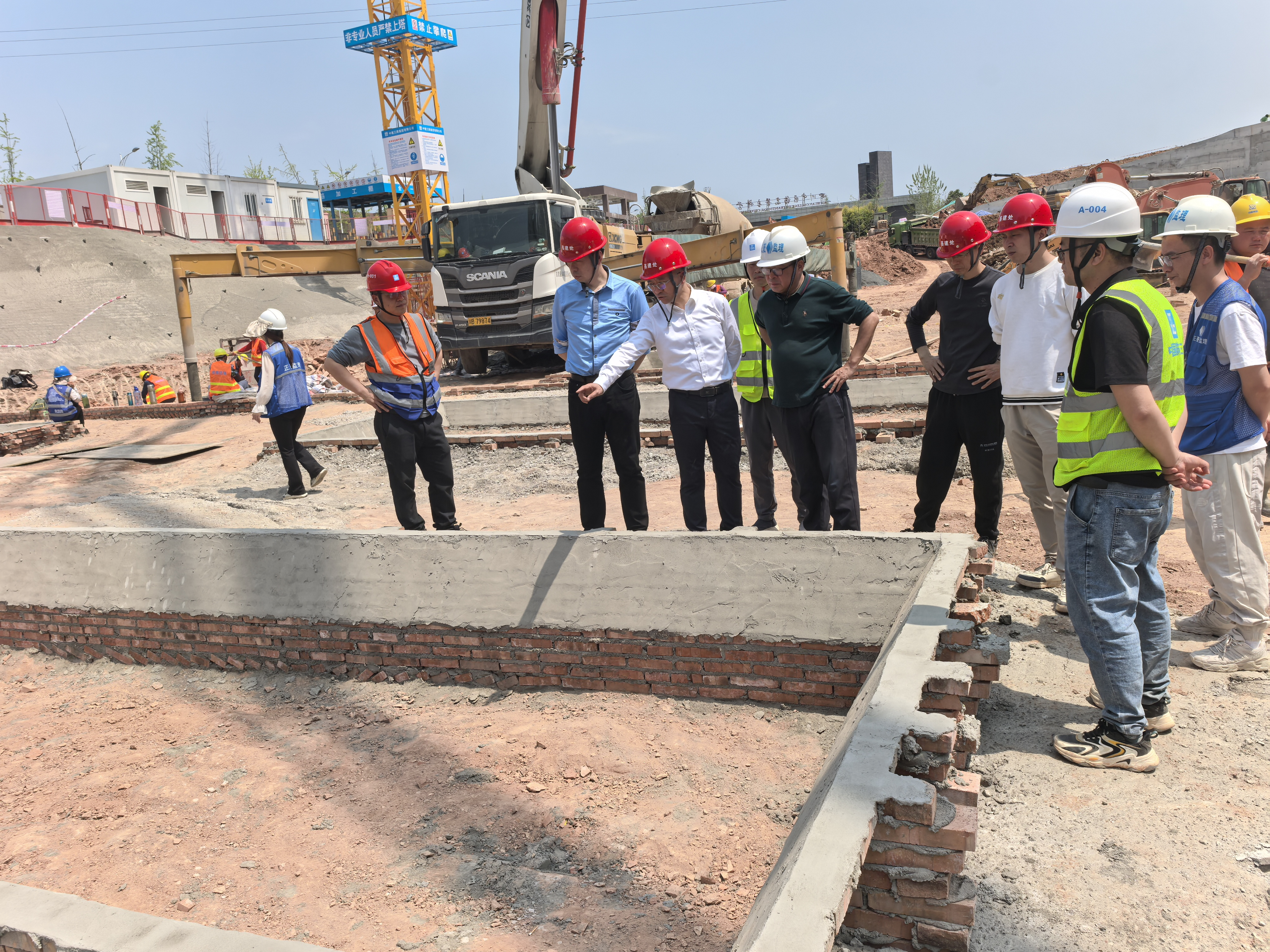 最后还前往基坑垫层混凝土浇筑作业区进行现场踏勘。李祥校长仔细检查了垫层混凝土浇筑工艺与质量,详细询问了浇筑过程中的技术要点和操作规范。他强调,混凝土浇筑质量直接影响到建筑的整体结构强度,施工单位务必严格按照标准工艺进行操作,确保混凝土浇筑均匀、密实,同时施工方要严格落实文明施工标准,做到“工完场清”。