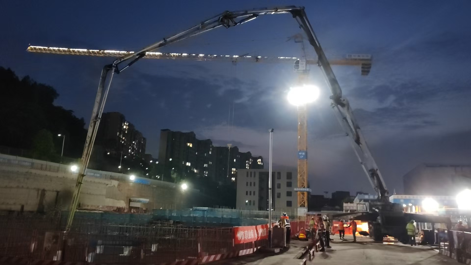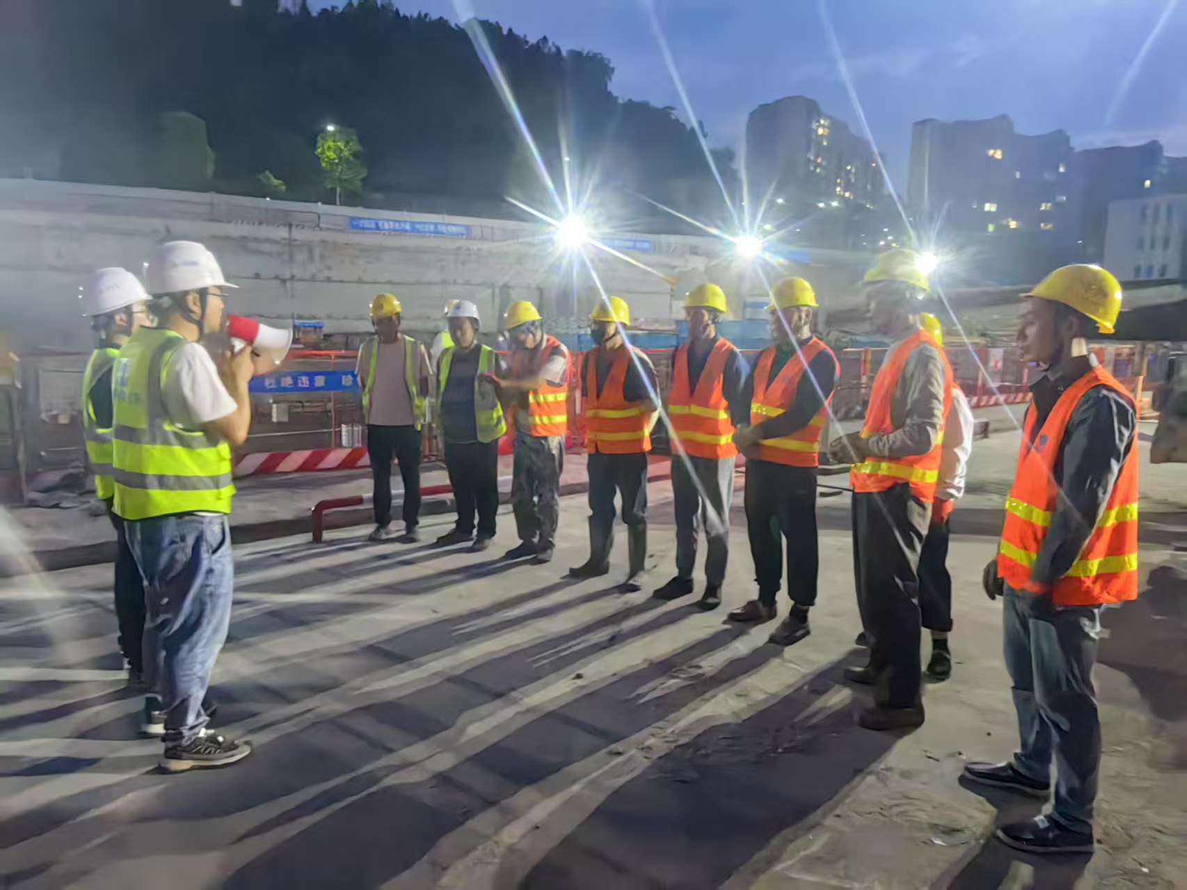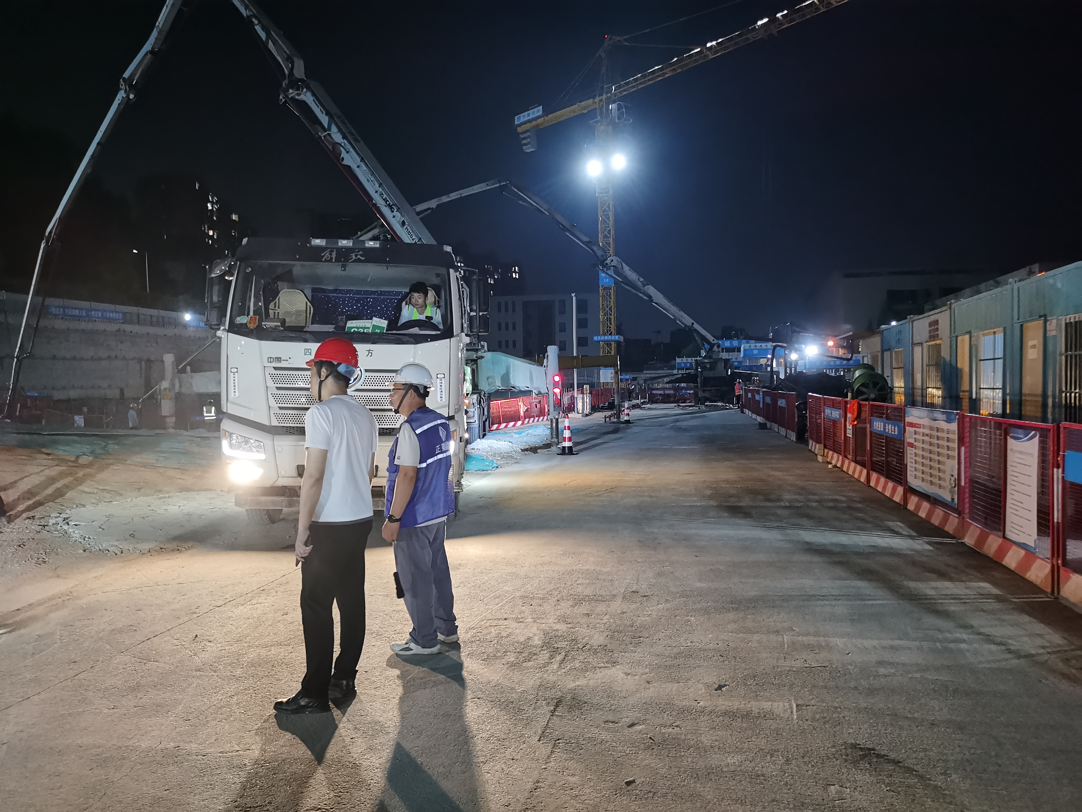 面对夜间施工组织难度大等挑战,彭浩处长现场调度施工、技术、安全等专班全程值守,实时监测浇筑质量,确保工程按计划推进。