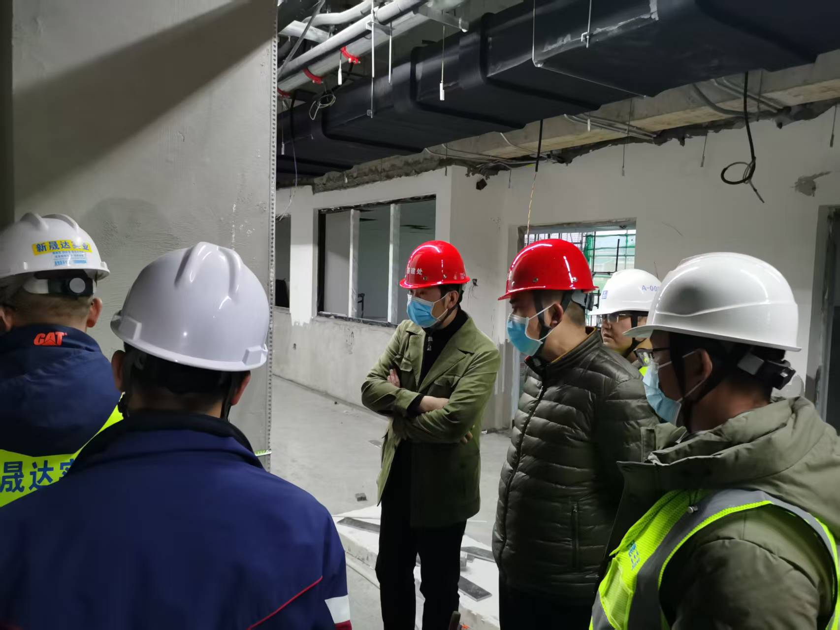 2025年12月12日,基建处处长彭浩带队,会同科研实验实训中心主任张维维、医学技术学院院长杨丹阳及相关教师,深入康养项目施工现场开展联合办公,实地协调解决建设难题。项目监理及施工单位负责人陪同。