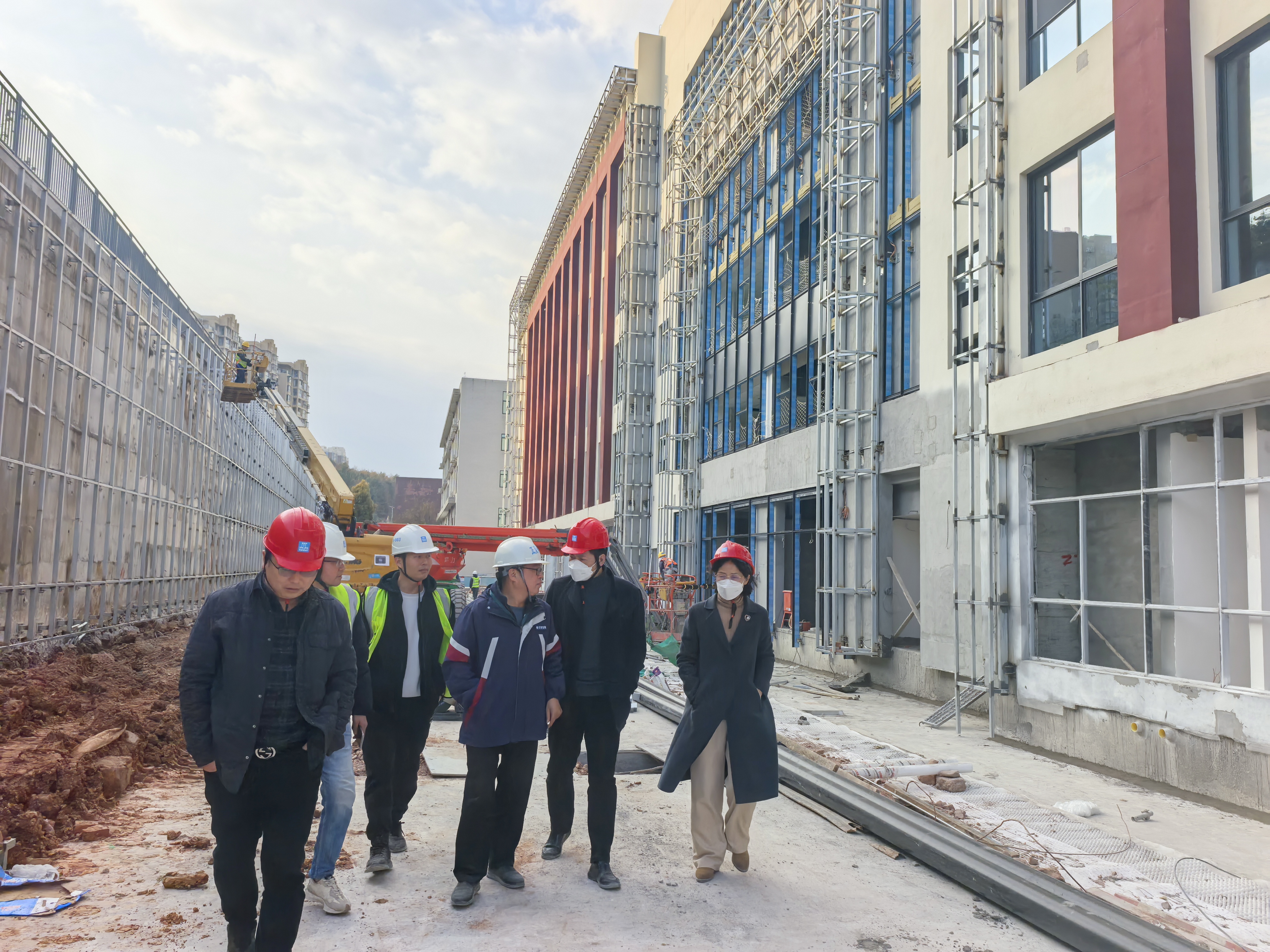 通过实地查看与集中研讨,肖玲副校长与各方负责人共同分析问题关键,研讨优化方案,并明确了各项问题的具体解决路径与工作要求。她强调,各参建单位须加强协同,紧盯关键节点,确保设计意图精准落地、施工方案科学合理,全力保障项目高标准、高效率推进。