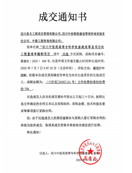 上一条:四川中医药高等专科学校北园宿舍建设项目建设用地地质灾害评估项目比选公告 下一条:四川中医药高等专科学校基建类零星项目的工程量清单编制