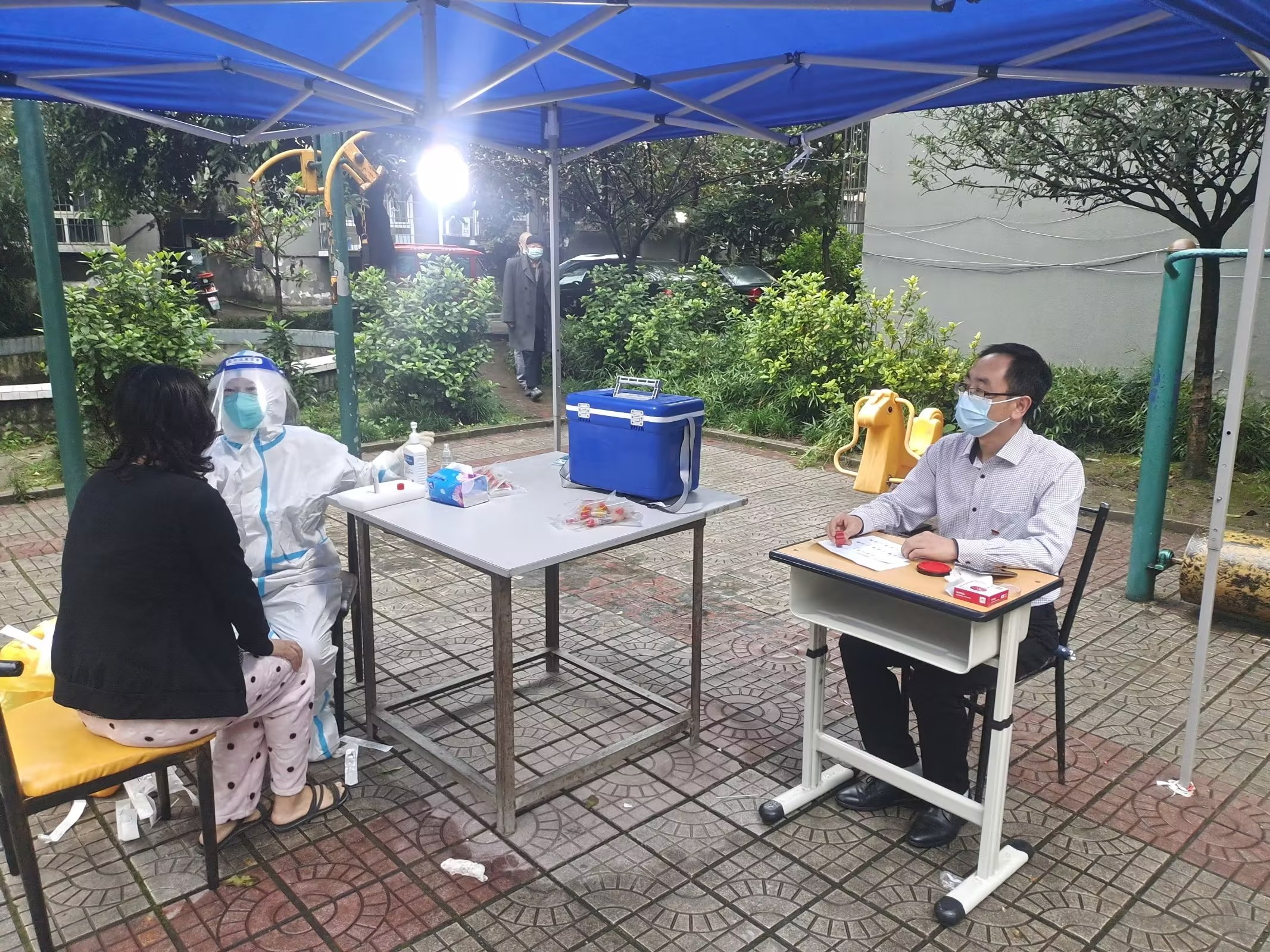 邓宇翔、刘波等在校外居住的同志们,也分别参加了所在小区志愿者服务工作。数九寒冬,他们每天不怕苦,不怕累,协助核酸检测、上门核对信息、分发物品,默默地服务社区防疫工作,与大家一起共克时艰。