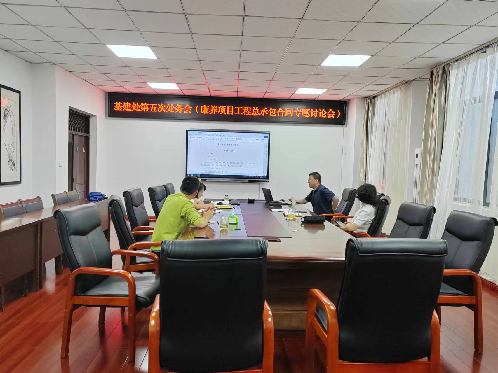2024年9月29日下午14:30,彭浩处长主持召开了2024年秋季学期第5次处务会,基建处全体人员参加了会议,分管副校长肖玲以及四川鼎天律师事务所雷守璋律师出席会议。
