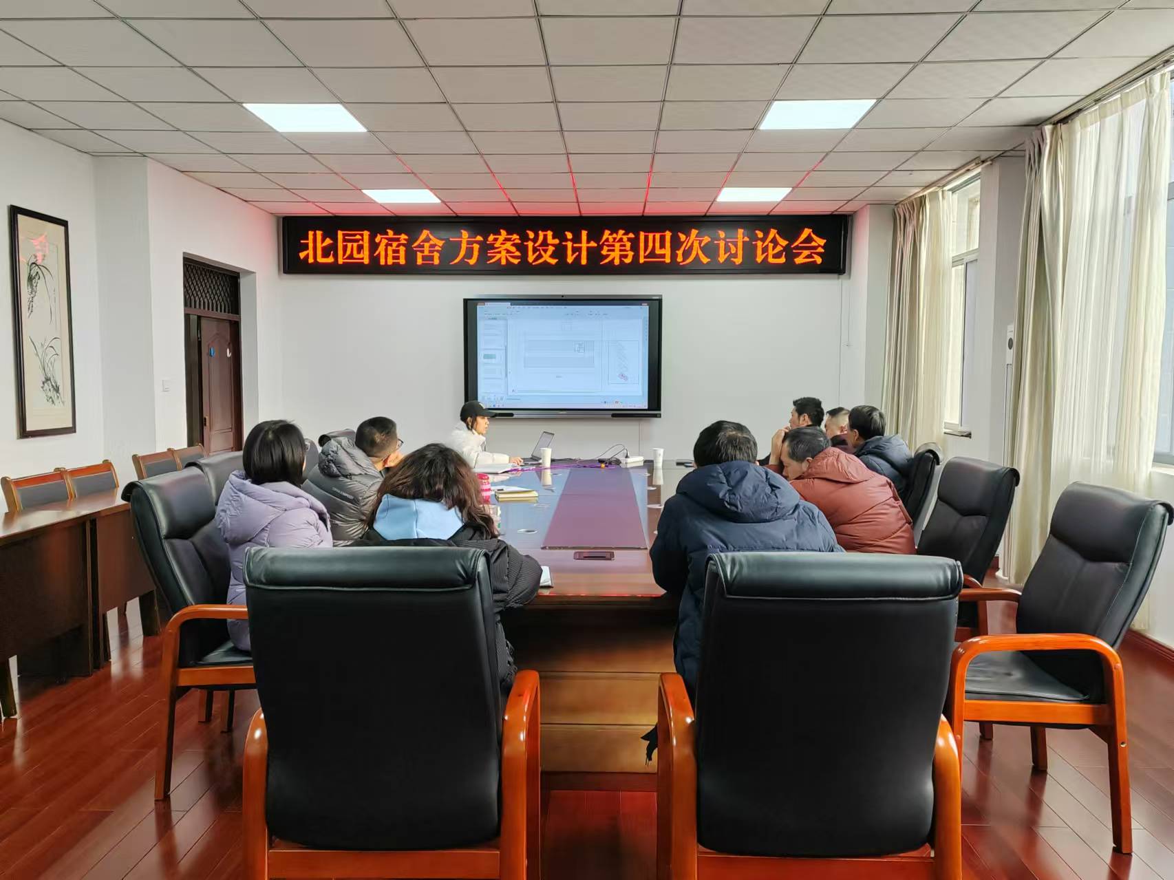 12月24日9:30,彭浩处长主持召开了北园宿舍方案设计第四次研讨会,方案设计专家及基建处全体人员参加了会议。