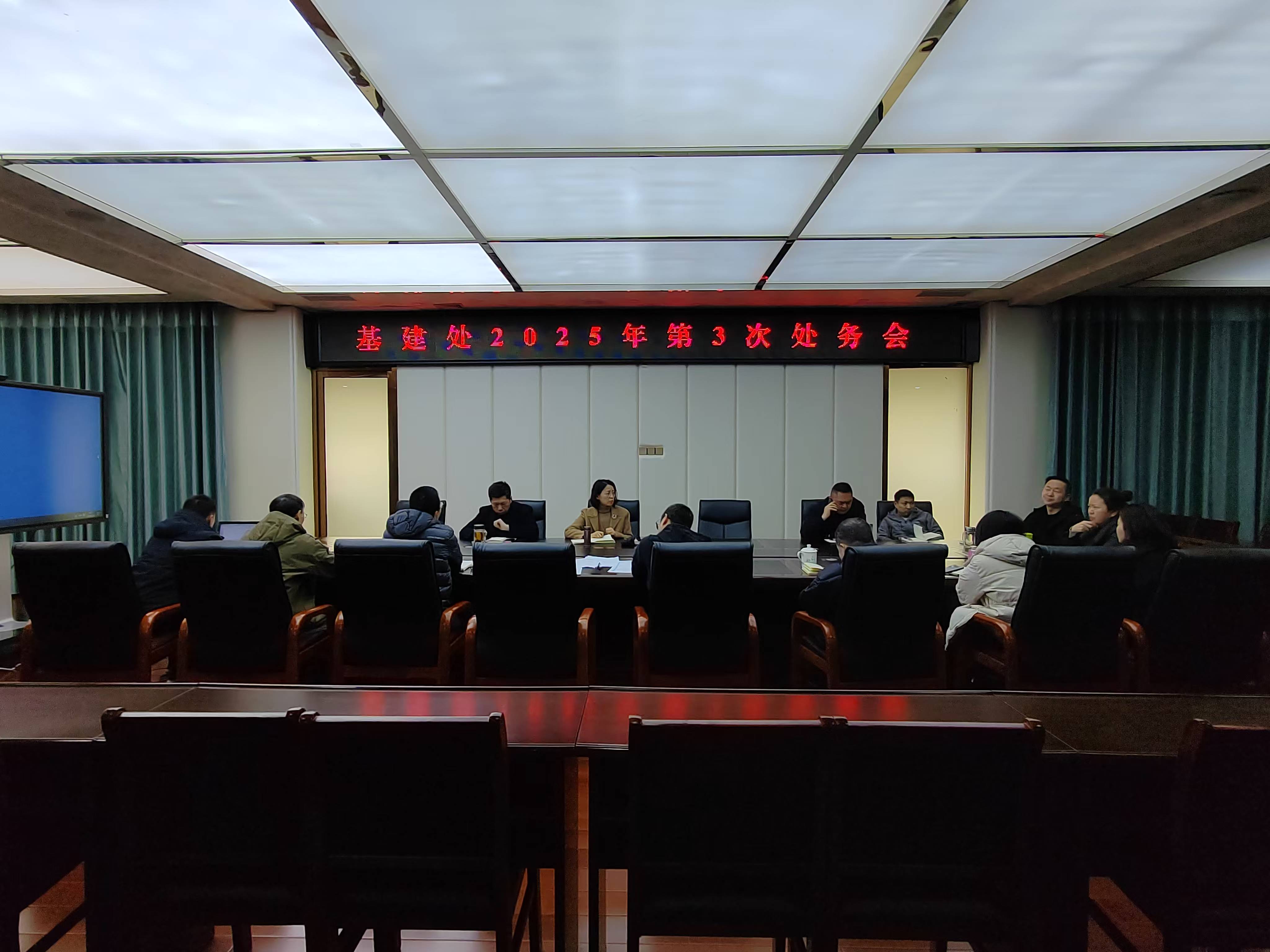 2025 年 3 月3日上午 9:30,基建处本学期第3次处务会在南区综合楼3楼新会议室准时召开。本次会议由处长彭浩主持,基建处全体人员出席。会上集体观看了警示教育片《忏悔录》和廉政主题舞台剧《等你归来》。通过真实案例,为全处人员上了一堂深刻的廉政教育课。