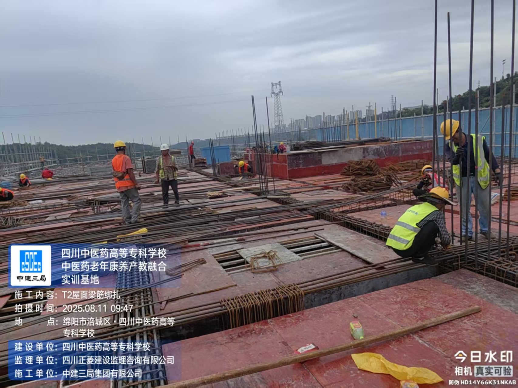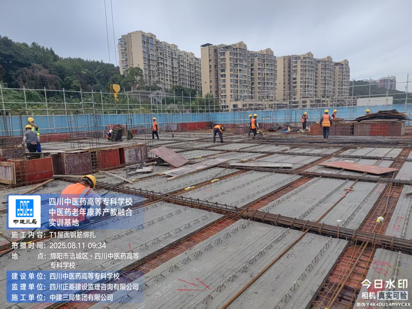 T1区域: 进行屋面钢筋绑扎施工