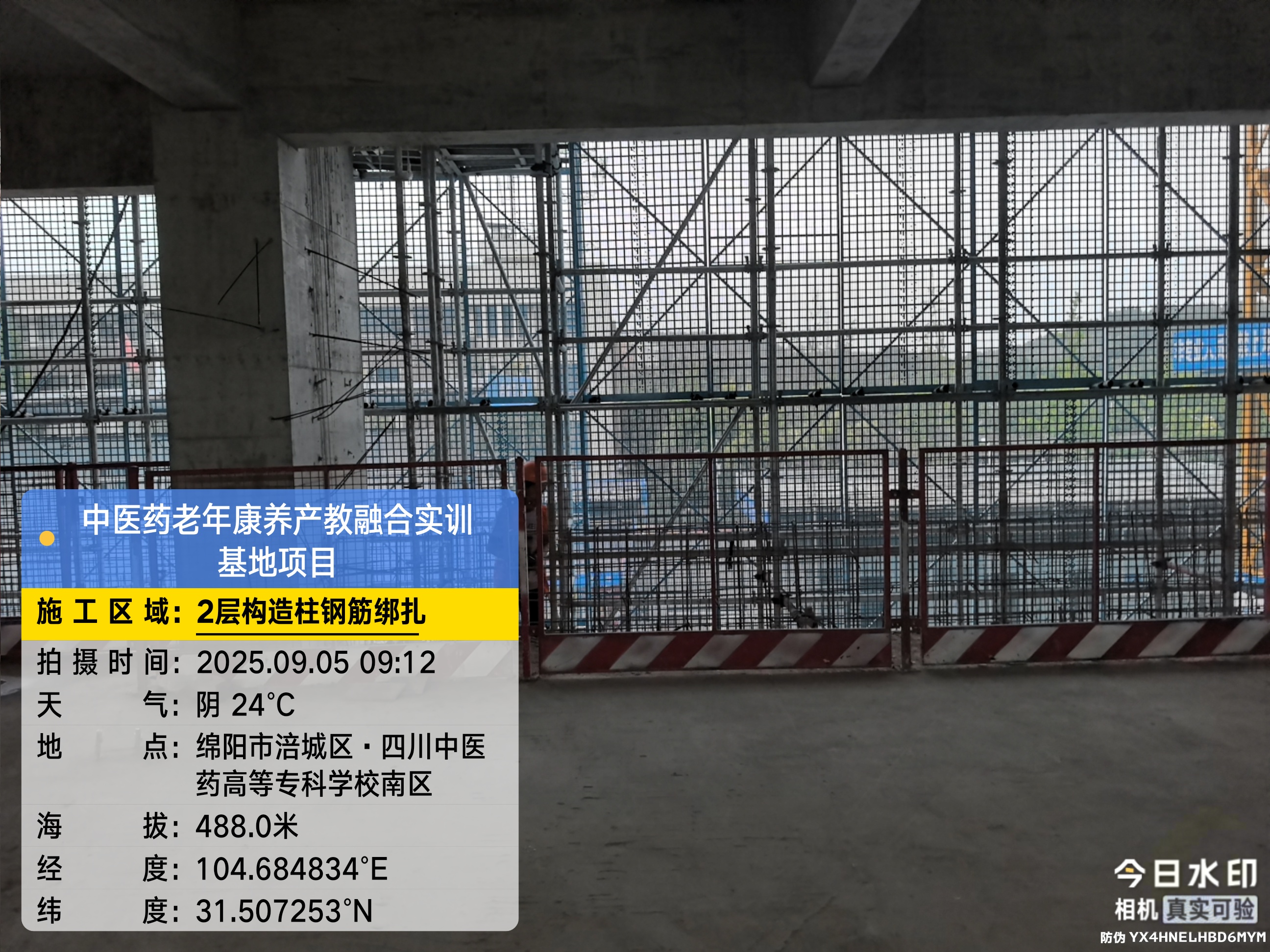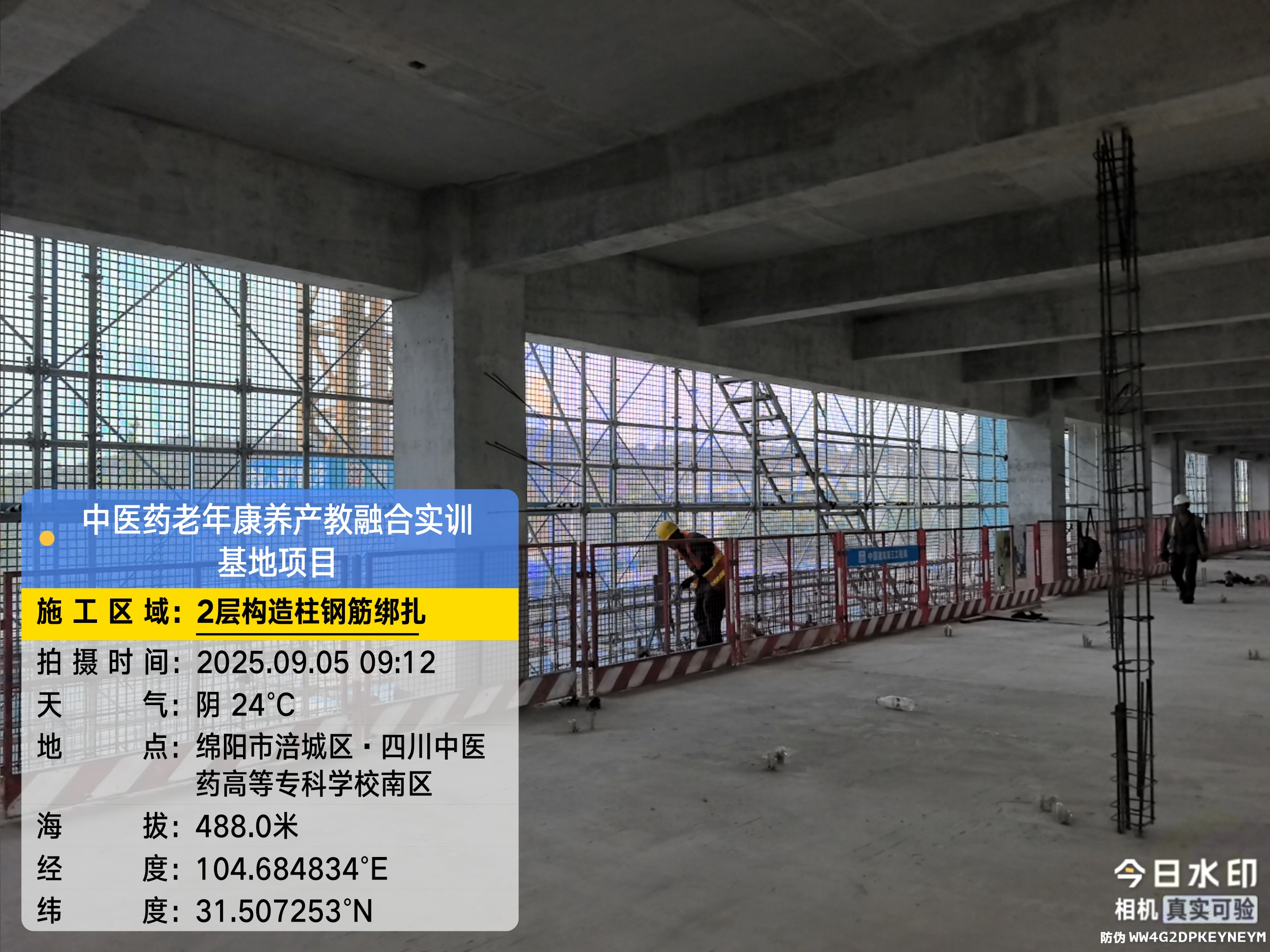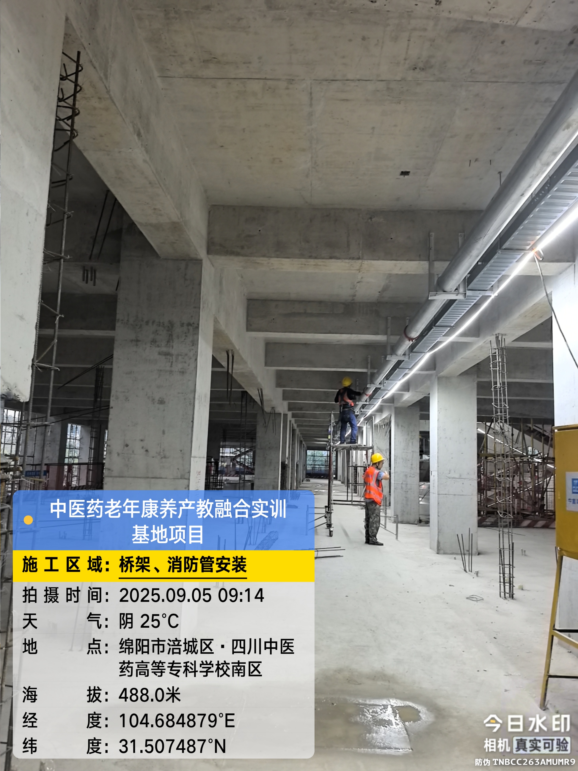 二层进行构造柱钢筋绑扎,桥架、消防管线、空调安装施工;