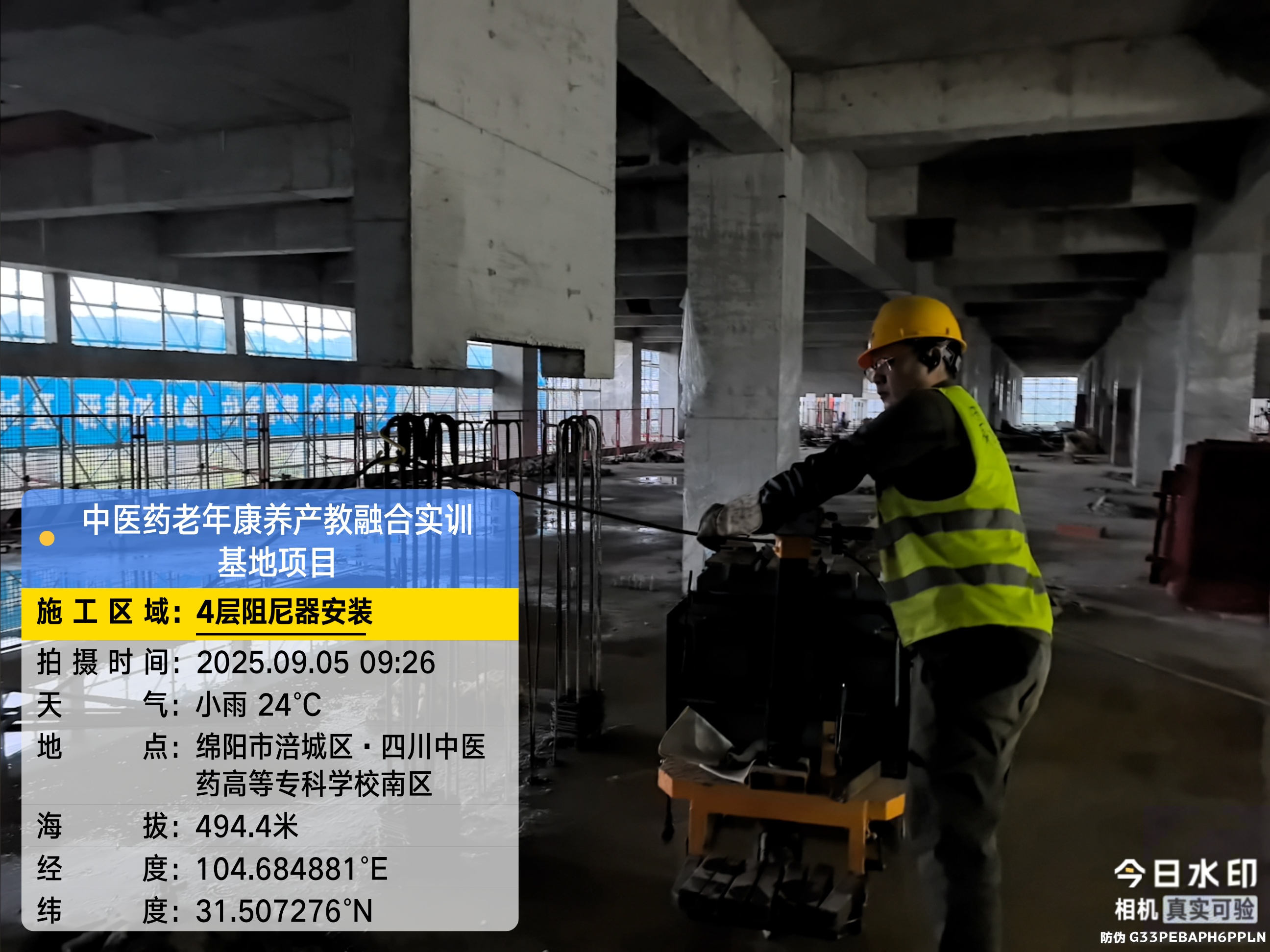 四层进行阻尼器安装施工;