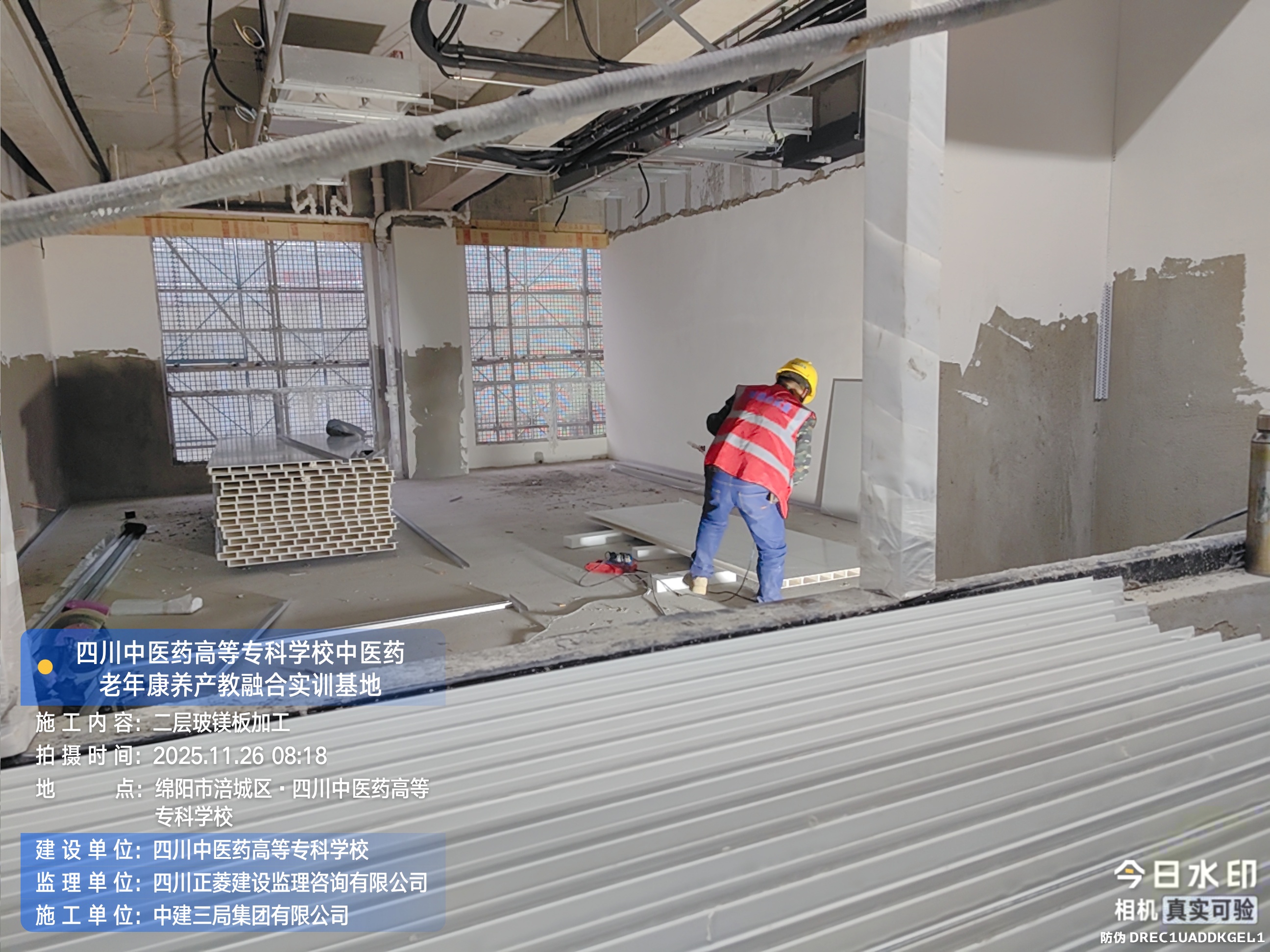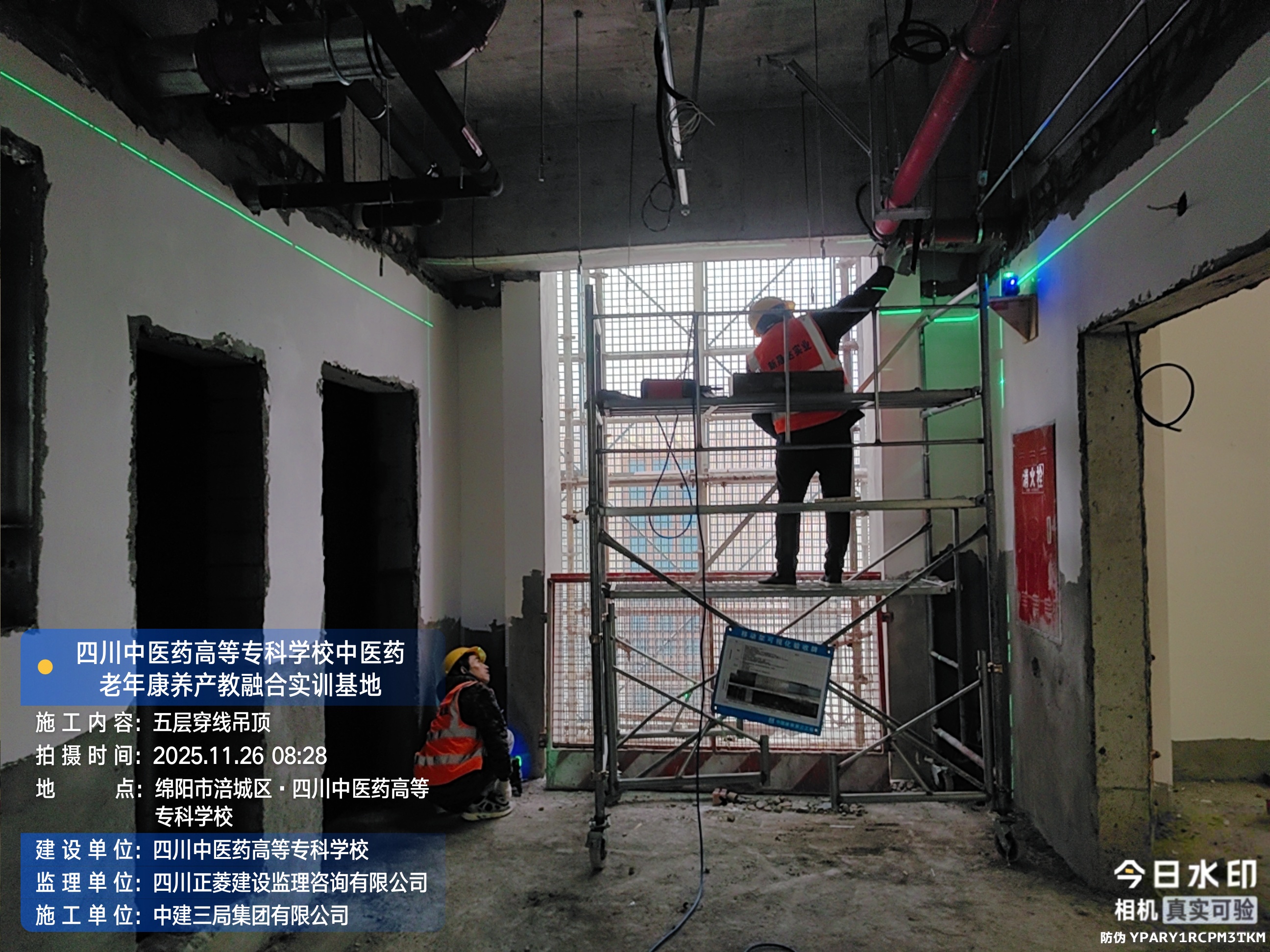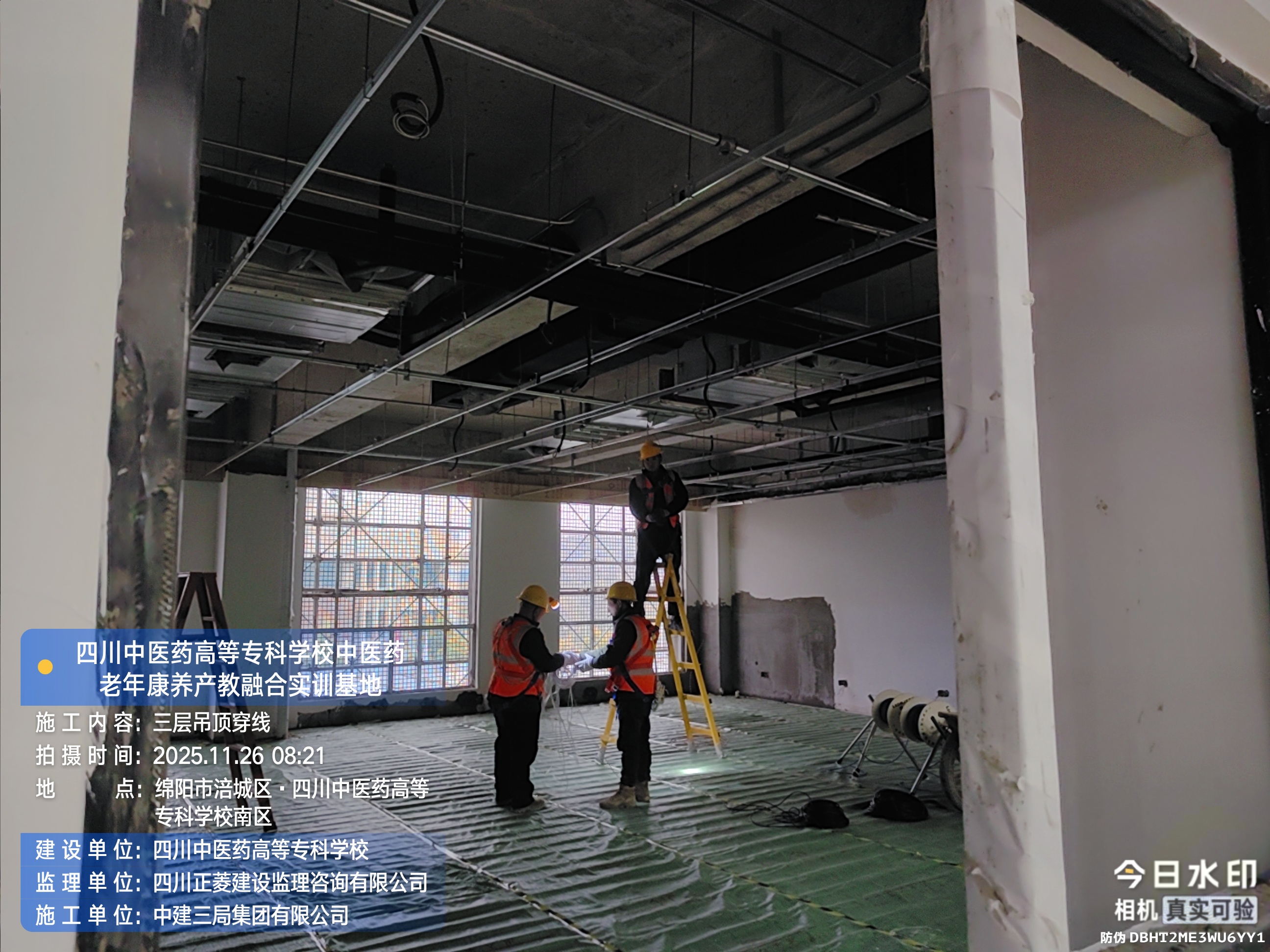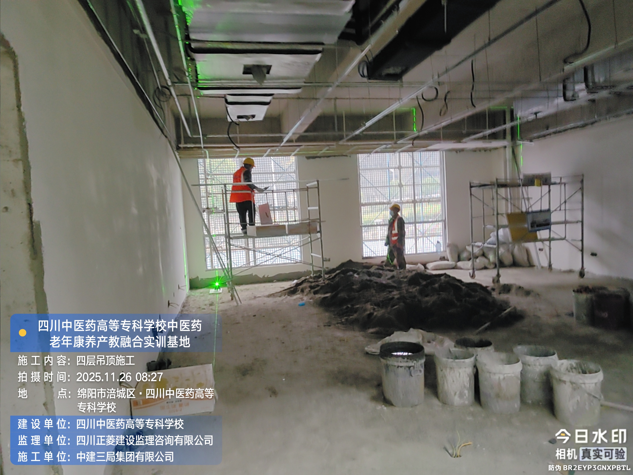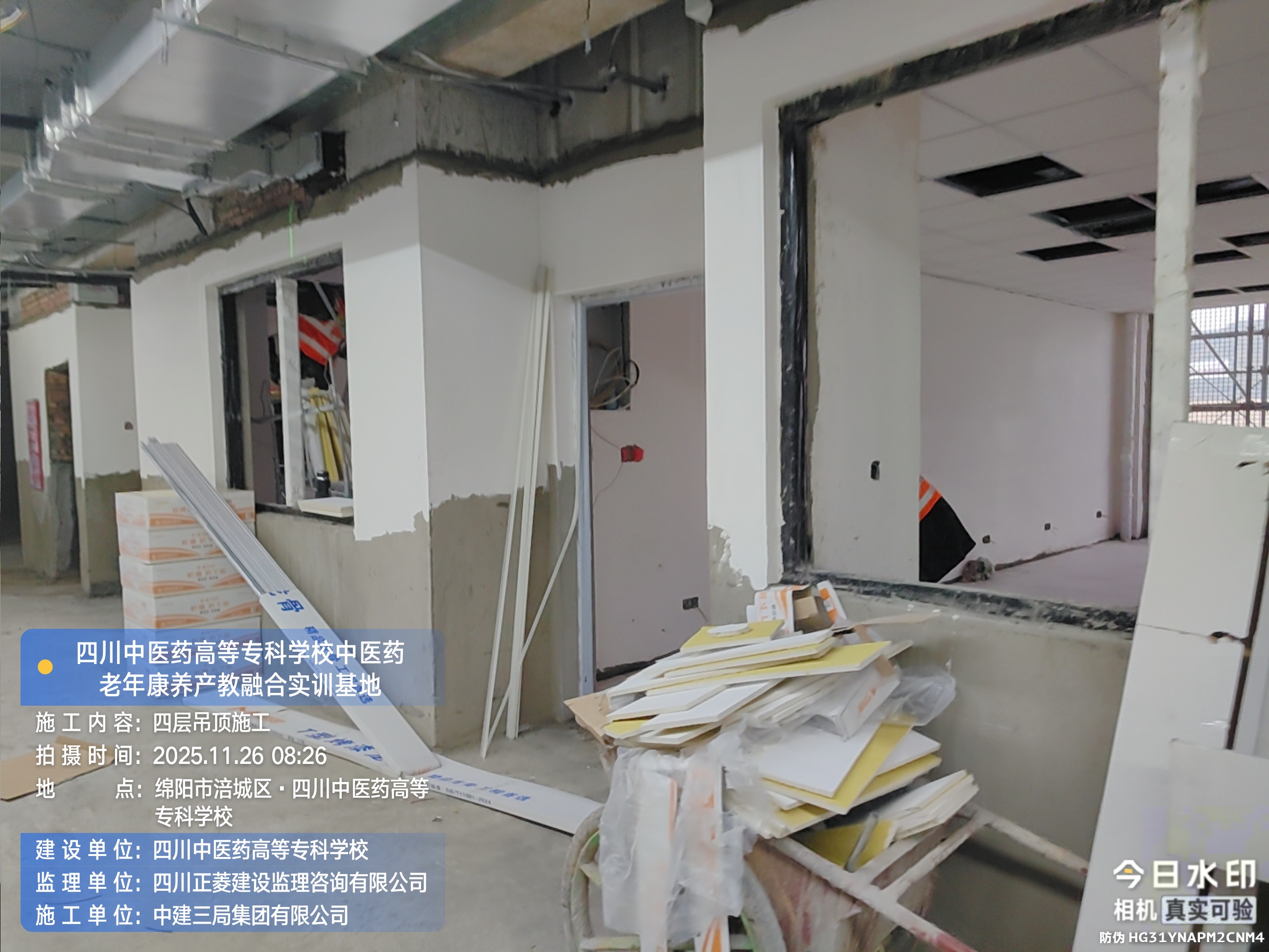 四层进行吊顶施工;