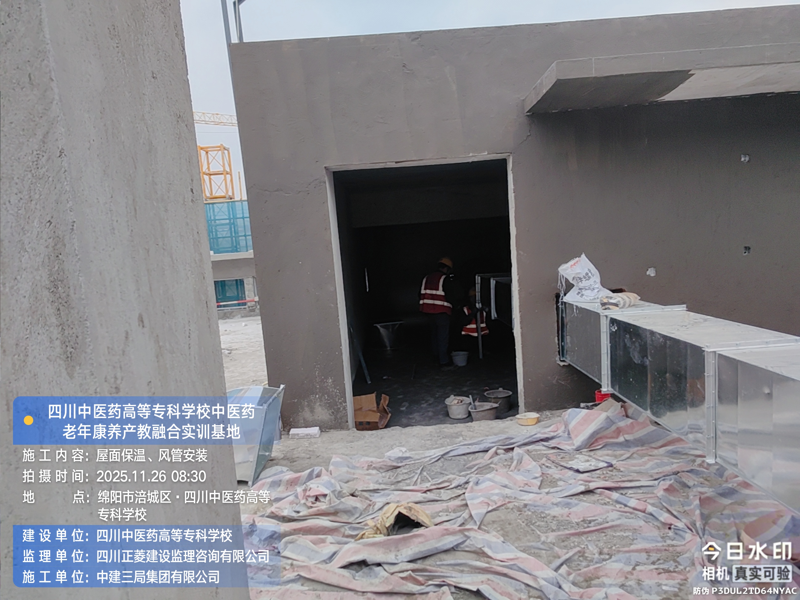 屋面进行保温、风管安装施工。