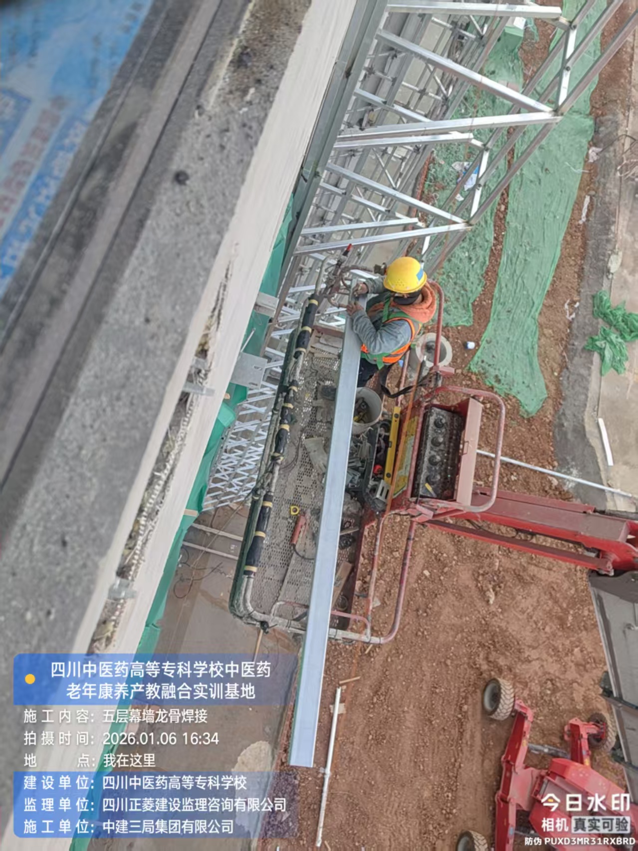 五层进行幕墙龙骨焊接。