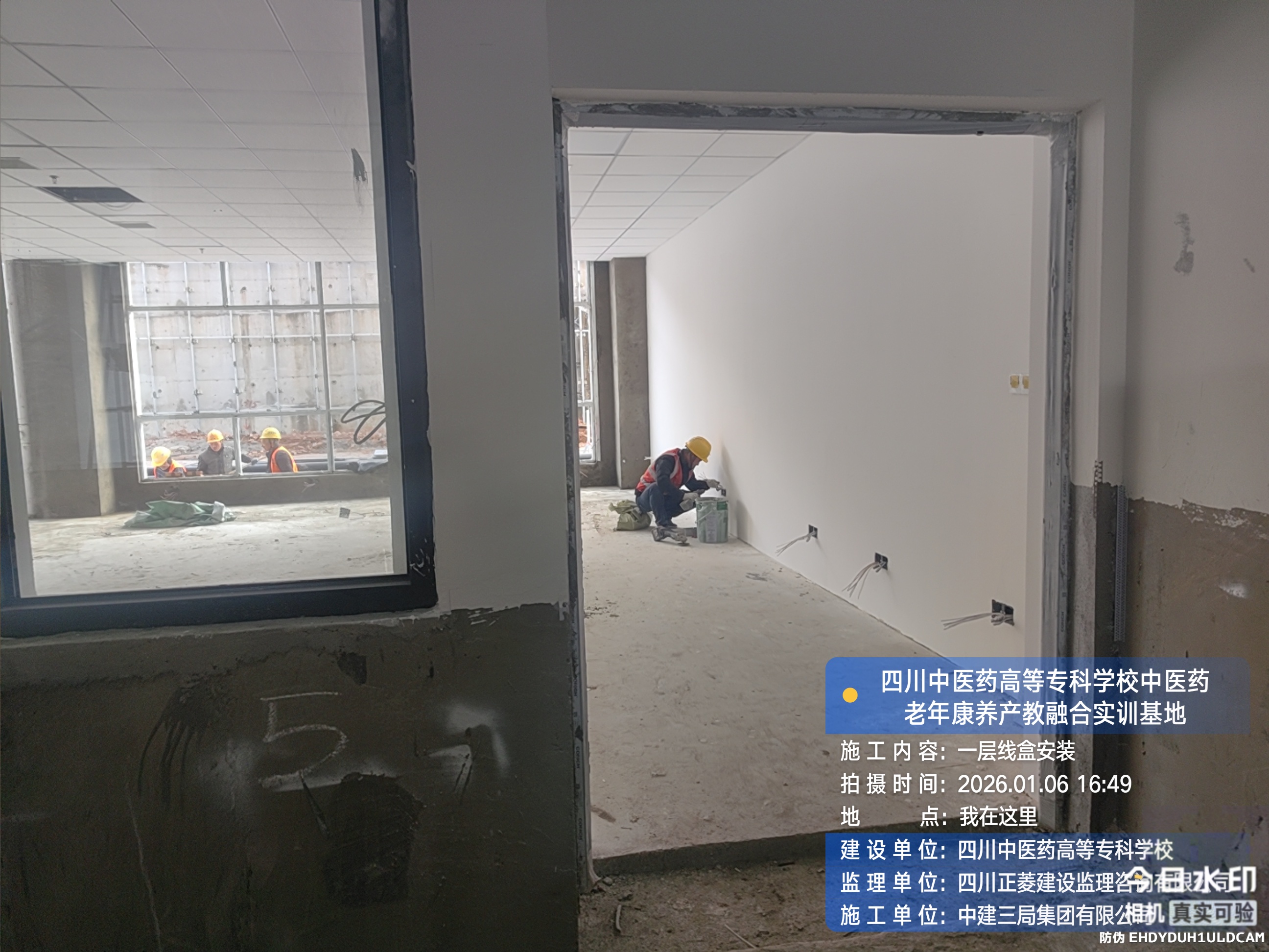 一层进行线盒安装施工;